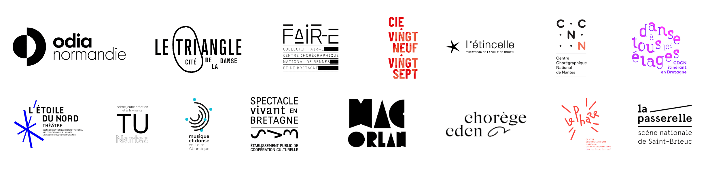 Danse Dense, Pantin (93), La Manufacture CDCN Nouvelle-Aquitaine Bordeaux (33) & La Rochelle (17), Danse à tous les étages, Rennes (35) & Brest (29) ; Le Gymnase CDCN, Roubaix (59) ; L’Étoile du nord, scène conventionnée danse, Paris (75) ; CCNT – Centre Chorégraphique National, Tours (37) ; Chorège CDCN Falaise Normandie (14)